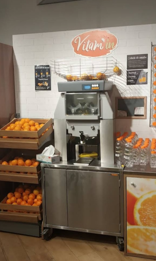 오렌지를 직접 짜서 오렌지 주스를 만들어 주는 기계. 사용하지는 않았습니다.