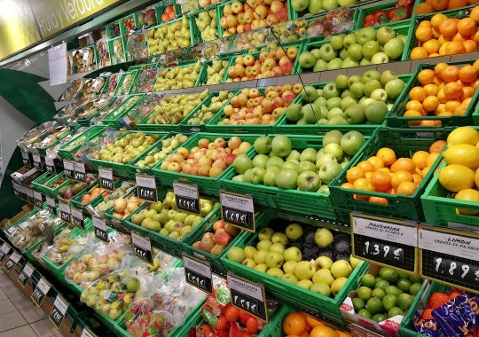 과일도 팝니다. 이것 역시 지점마다, 마켓마다 다르겠지만, 아래의 봉지를 하나 뜯어서 과일을 담은 뒤 계산할때면, 계산원이 과일 갯수 세고 저울로 무게를 재며 가격을 측정해줍니다.