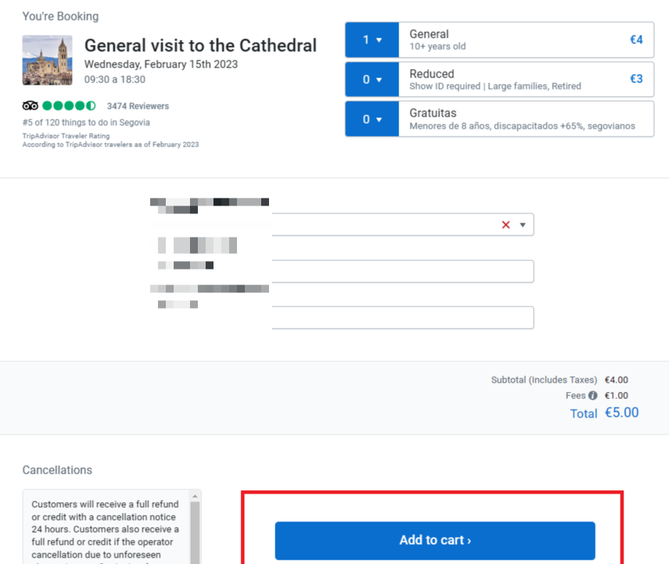 먼저 세고비아 성당 티켓 예약 설명을 하기에 앞서