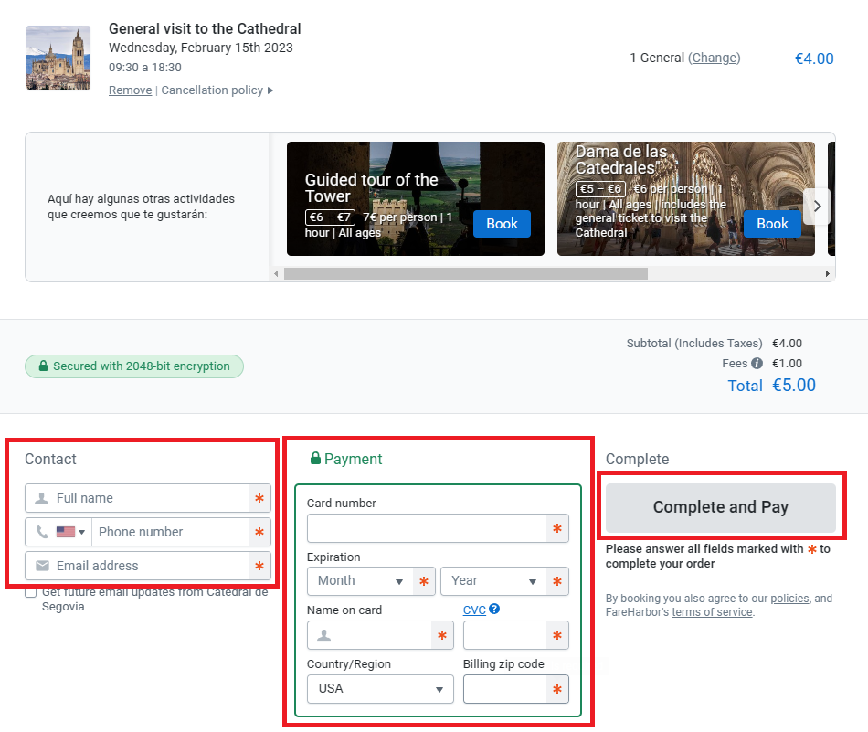 8)마지막으로 이름 전화번호, 이메일 카드번호 등을 입력한 뒤 complete and pay를 클릭하면 끝이 납니다.