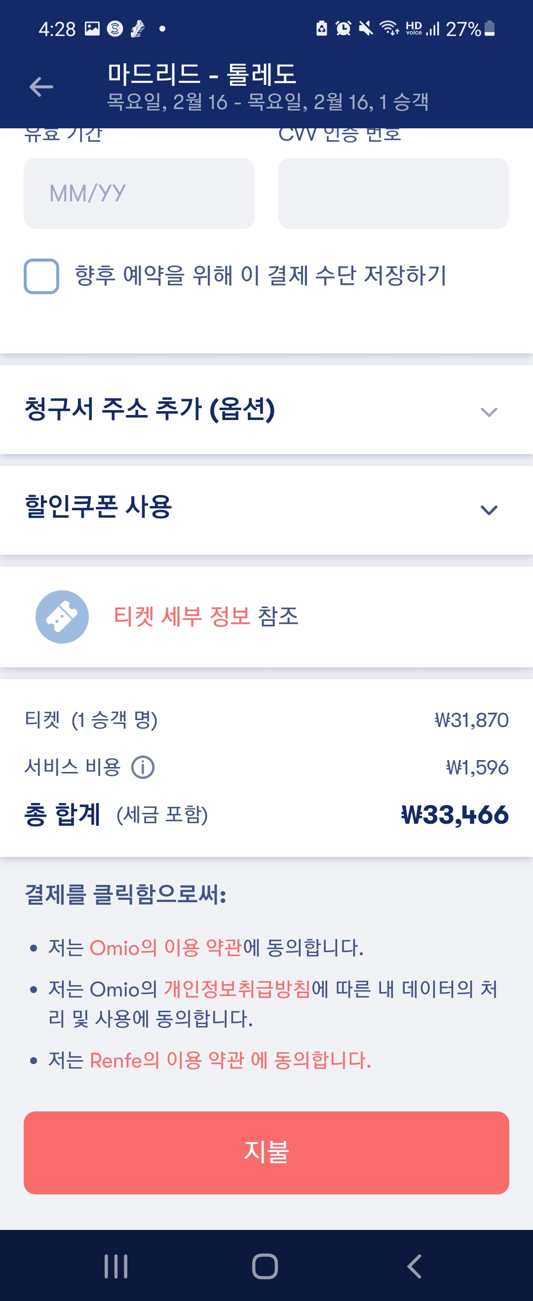 이번에도 역시 렌페 사이트에 접속이 안되어서 오미오(Omio)어플로 안내해드리겠습니다.