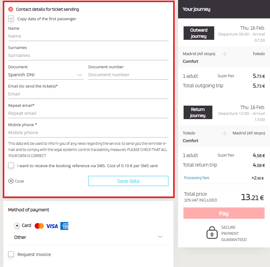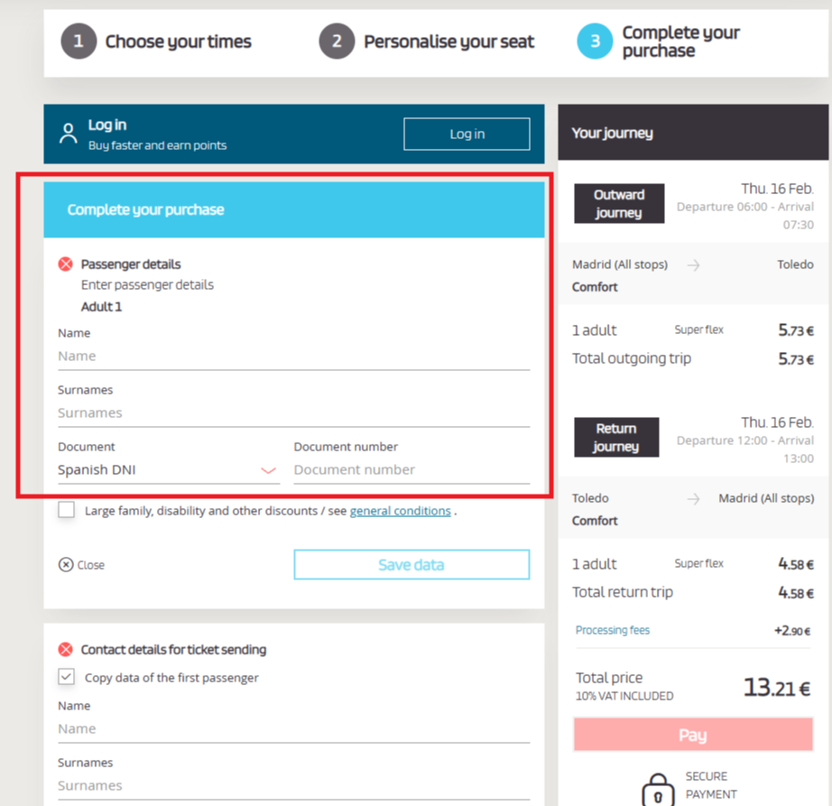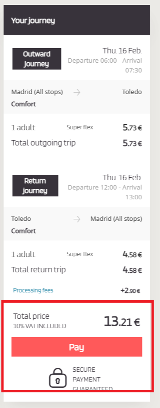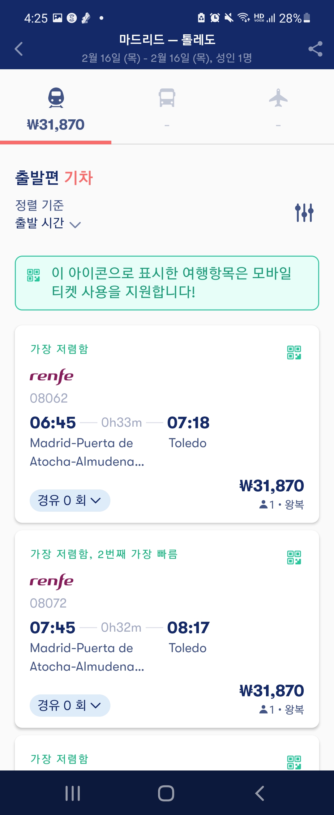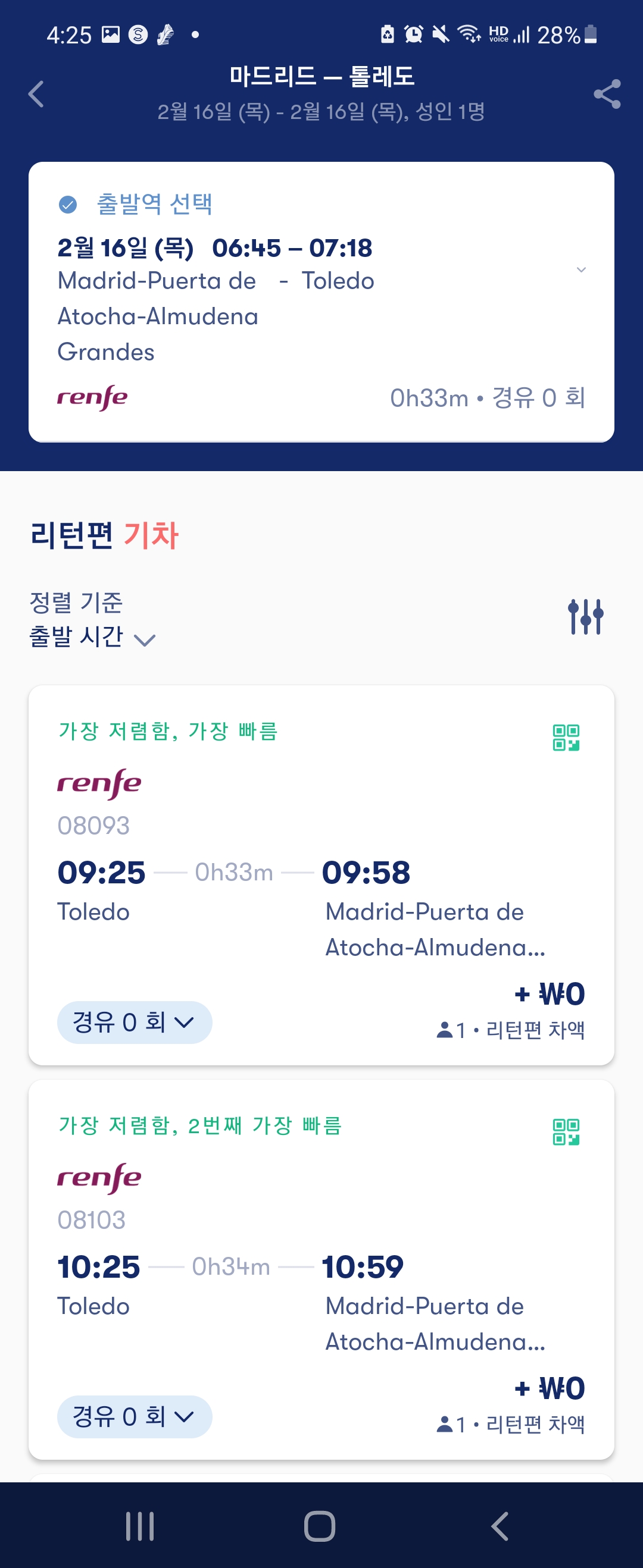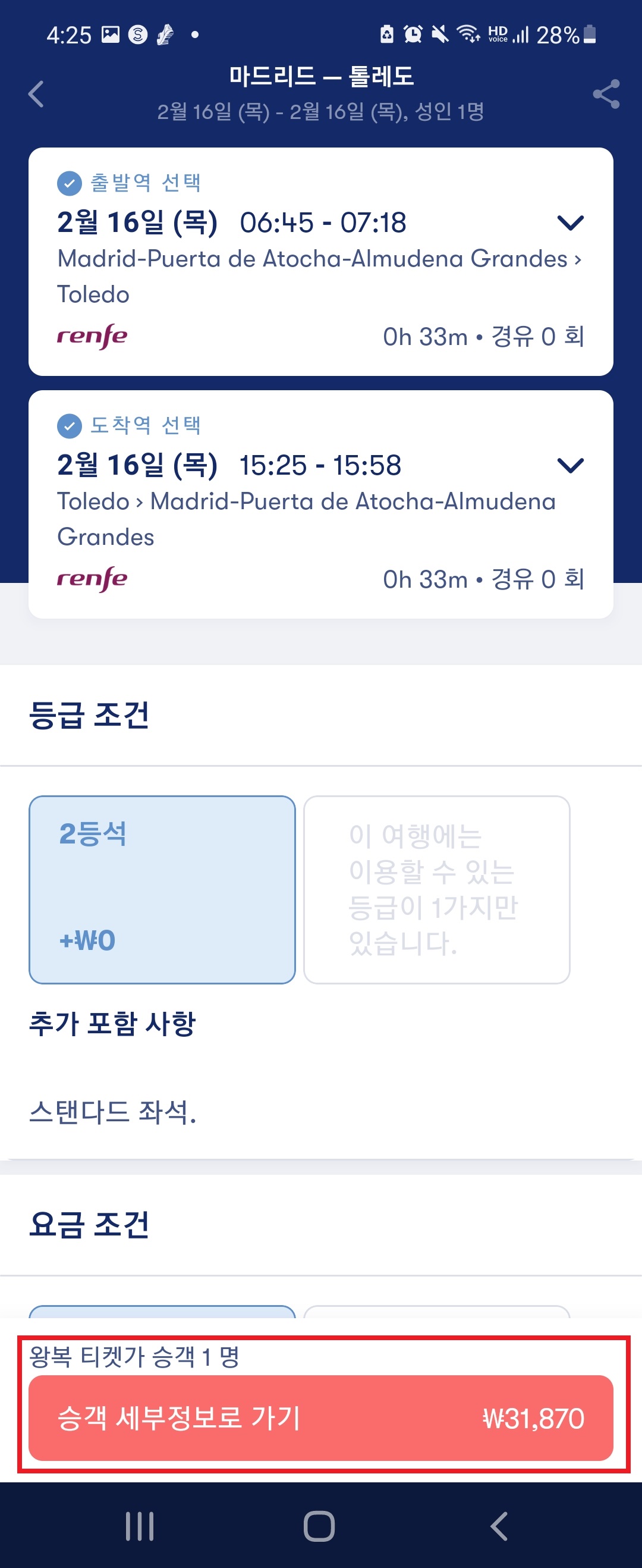 1. 출발지는 마드리드,.도착지는 톨레도로 설정한 뒤,