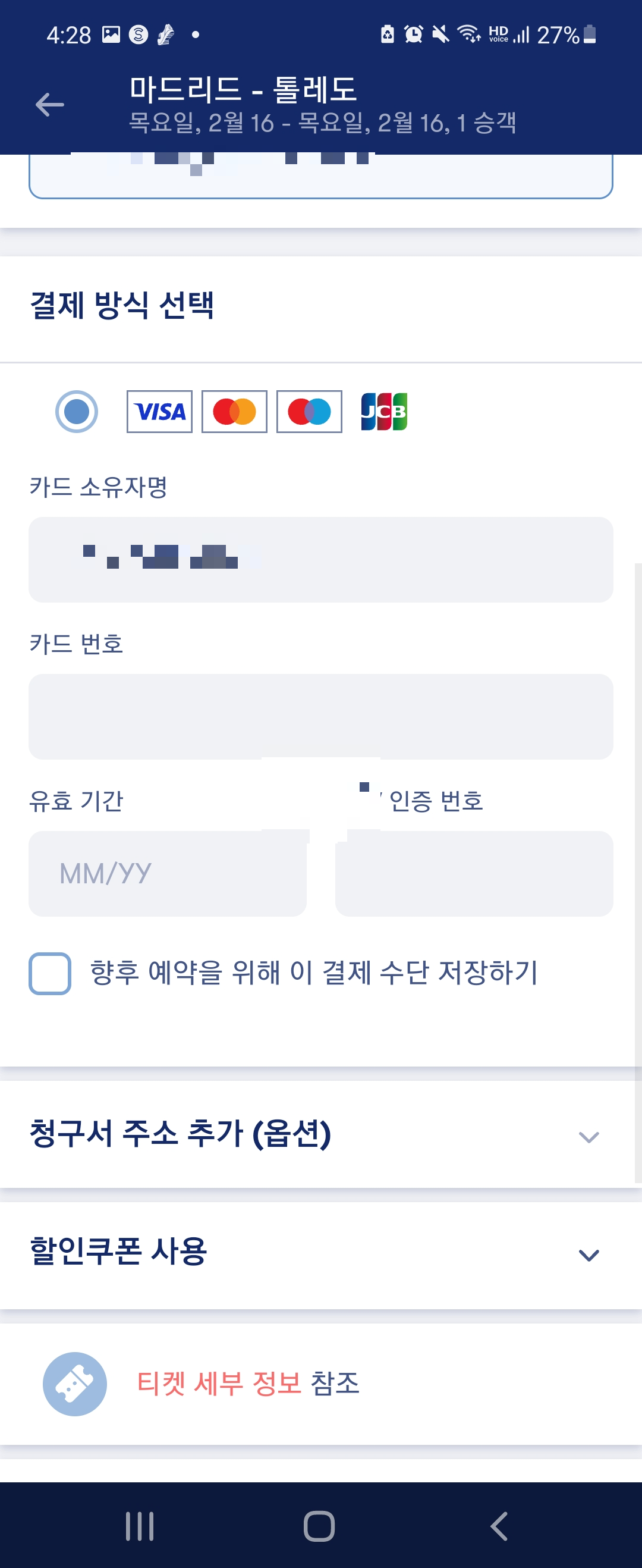 이것들을 입력한 뒤 아래로 스크롤해서 "여행항목 세부정보 보기"를 클릭해줍니다.