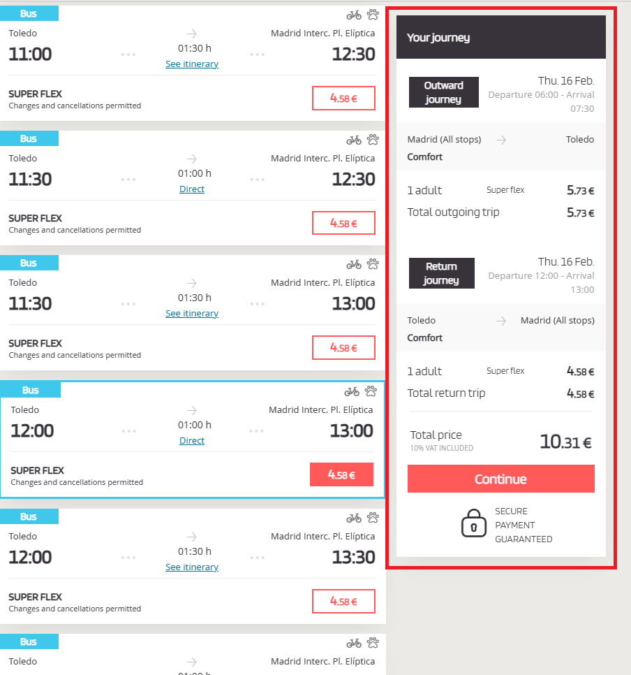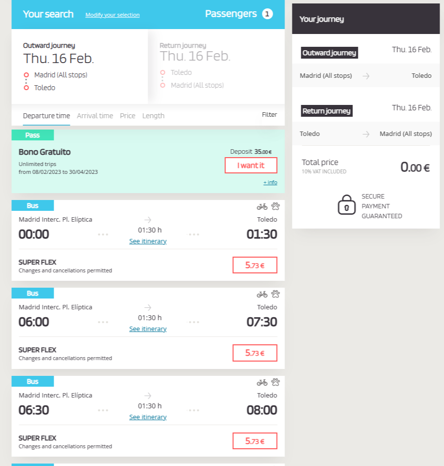 Point of depature(출발지) : Madrid(all stop)