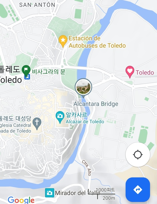밑에 사진은 톨레도 지도입니다. 노란 별표는 버스정류장, 분홍하트는 렌페도착지점이고