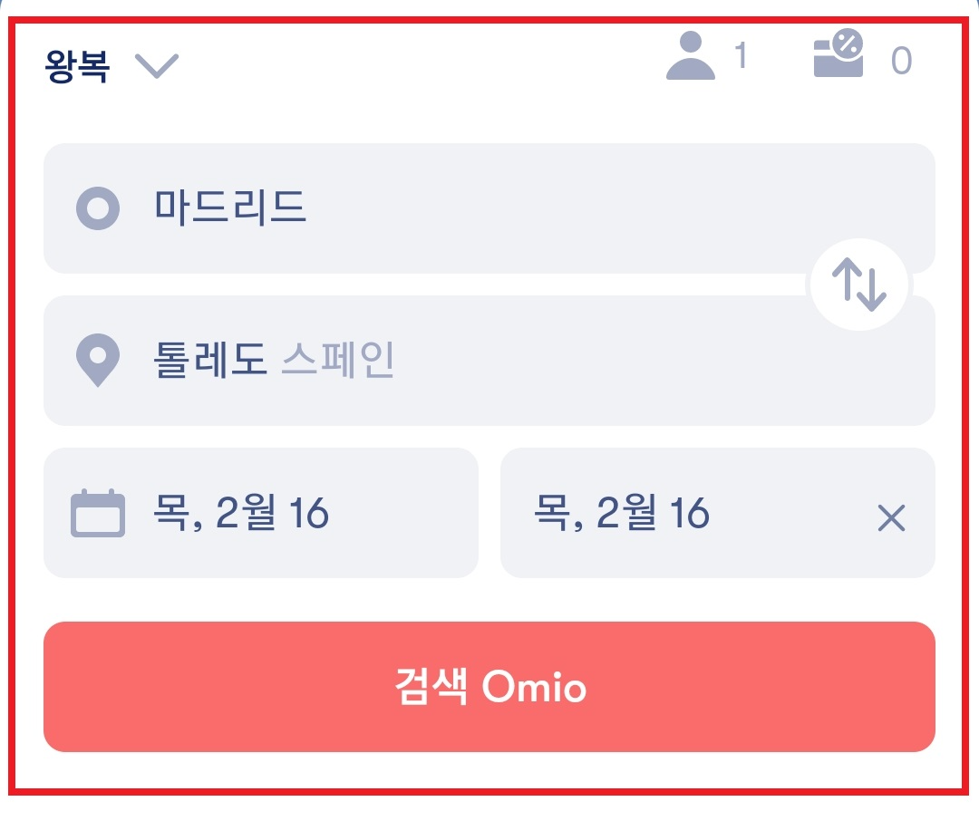 출발날짜 오는 날짜 설정하시고 검색omio를 클릭해주세요