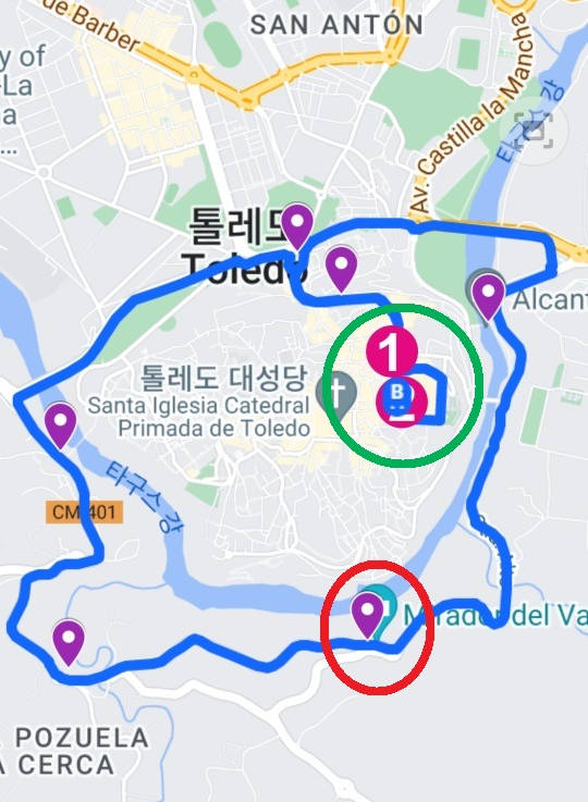 미라도르 전망대에 약 10분간 정차했다가 다시 톨레도 도시로 진입합니다.