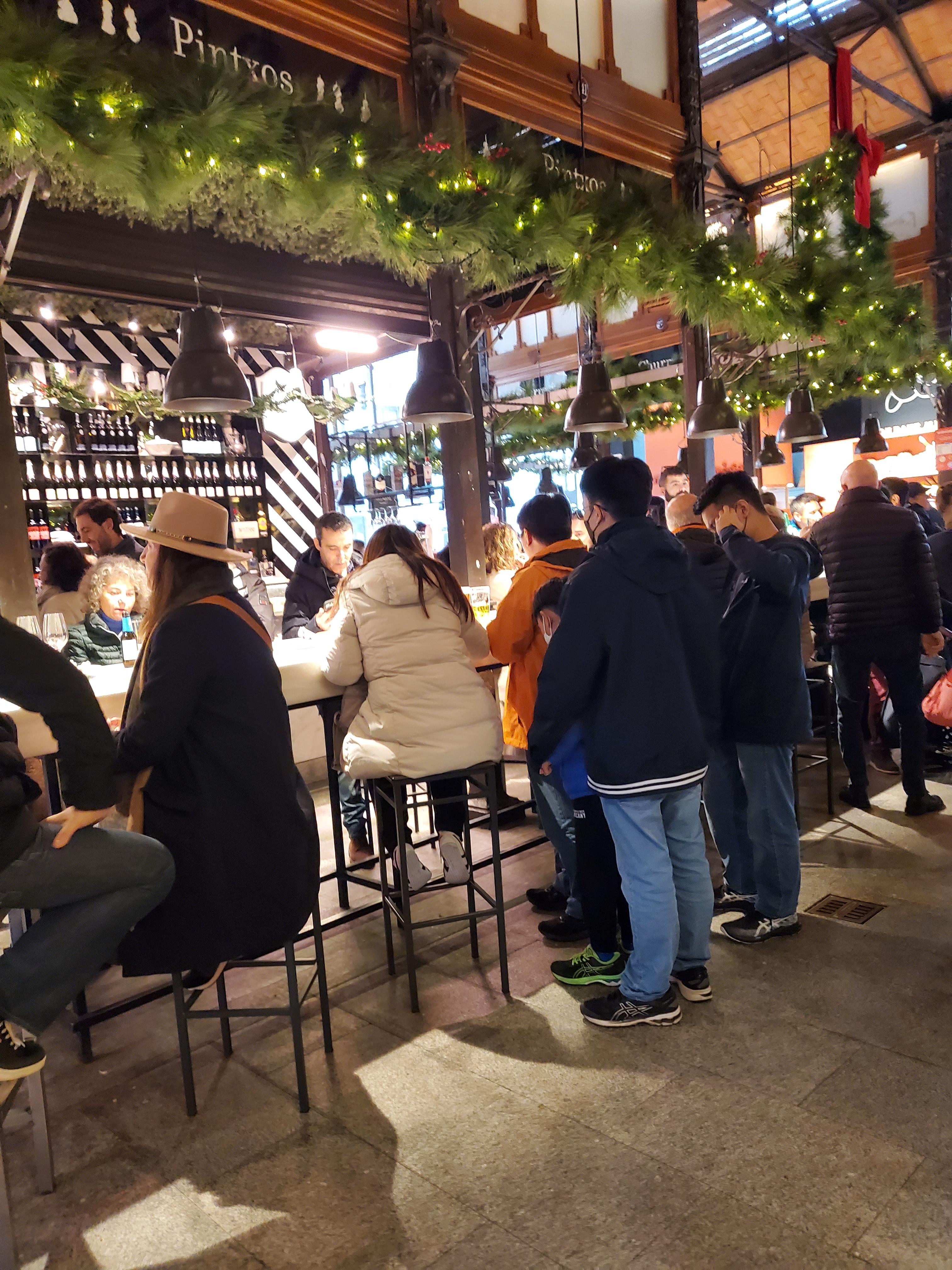 산미구엘 시장이 연간 1000만명이 방문하는 만큼, 그 좁은 공간에 사람들이 다 있지는 못할겁니다. 테이크아웃이 되는 곳이 많을텐데, 산 미구엘 시장을 나가도 밖에는 딱히 앉을 곳은 없습니다 (건물을 지지하는 단층이나, 계단에서 앉아서 음식 먹는 사람도 은근 있습니다)