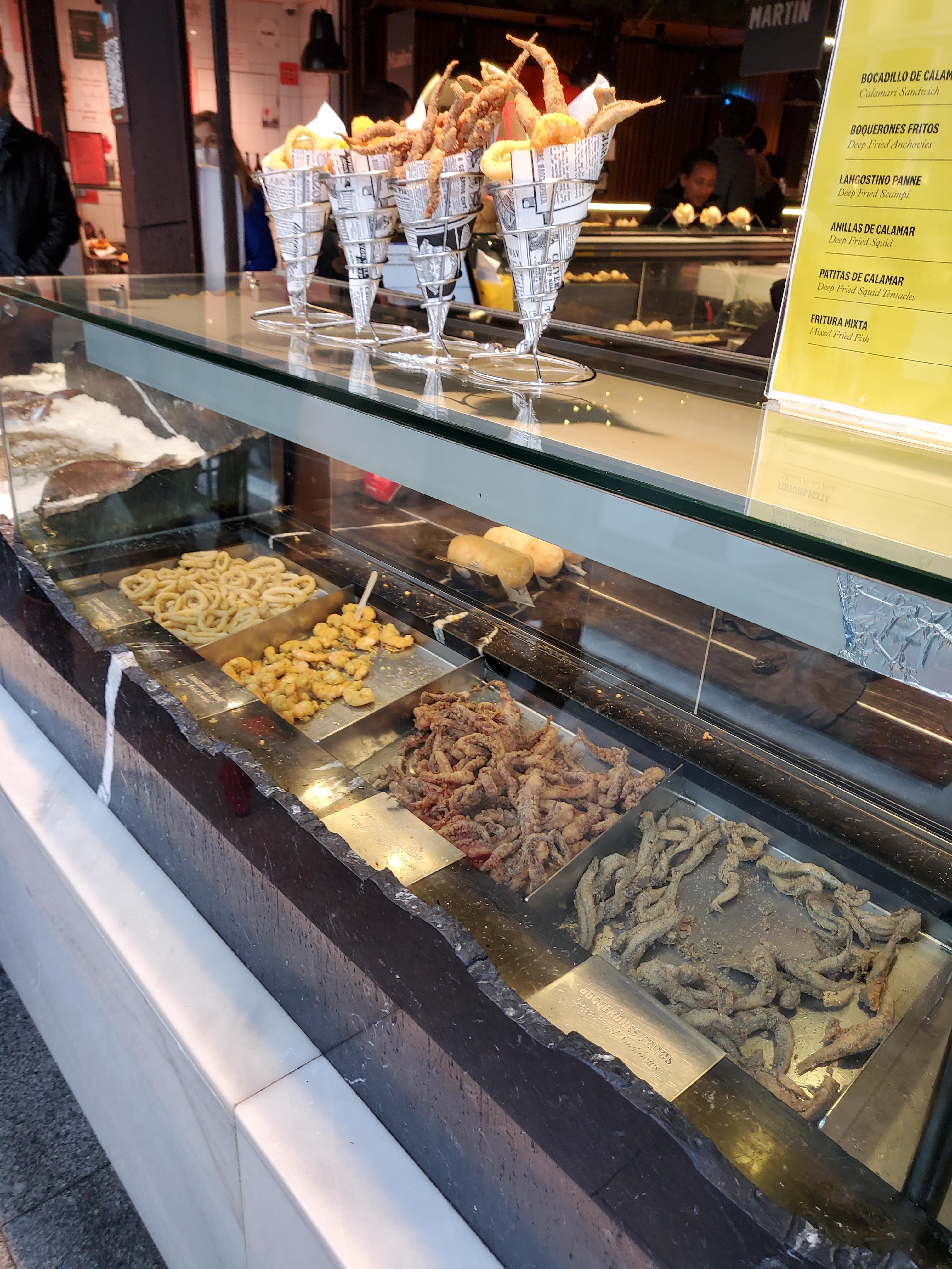 저는 산미구엘 시장에서 식사를 하거나 요기를 때우지는 않았습니다. 만약에 아는 사람끼리 여행왔다면 같이 한번 사 먹어봤을 텐데, 사람도 북적여서 어디 자리 잡기도 마땅치가 않았고, 모든 스페인 식당이 그렇겠지만 음식값이 전체적으로 한국보다 비싼 편이다보니 손이 잘 안가더군요.