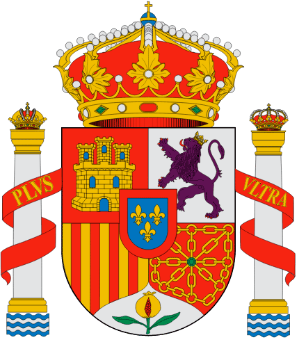 방패문장 양쪽 빨간 리분 PLVS VLTRA라고 적혀있는데, 이는 '보다 먼 세계로'라는 뜻의 라틴어로, 기둥은 헤라클래스의 기둥인데 각각 지브롤터(Gibraltar)와 세우타(Ceuta)를 의미합니다.