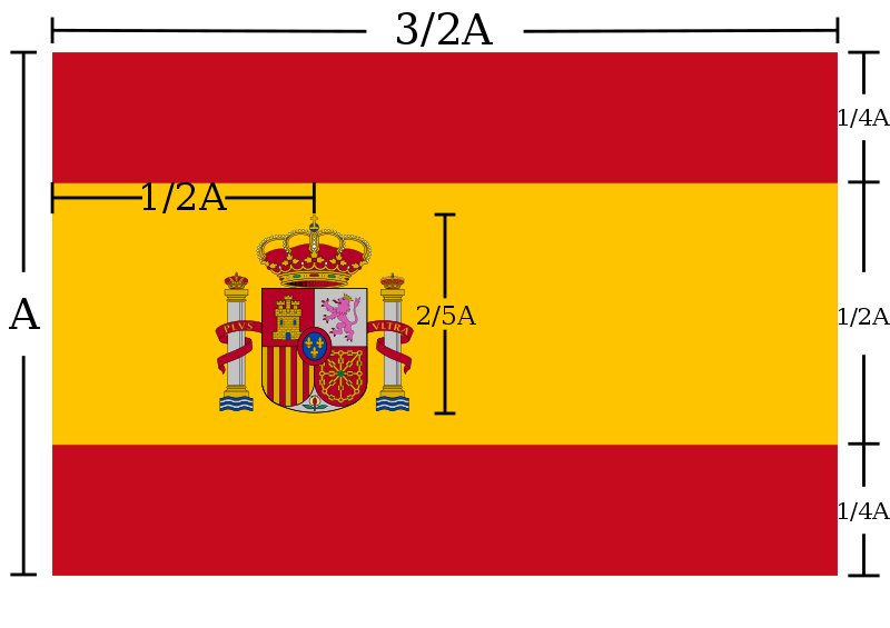 위에 보는 빨간색과 노란색 바탕만 1785년에 등장했지, 스페인 국기에 달린 방패 문장은 1930년 제2 공화국 시절에 처음 등장했습니다.