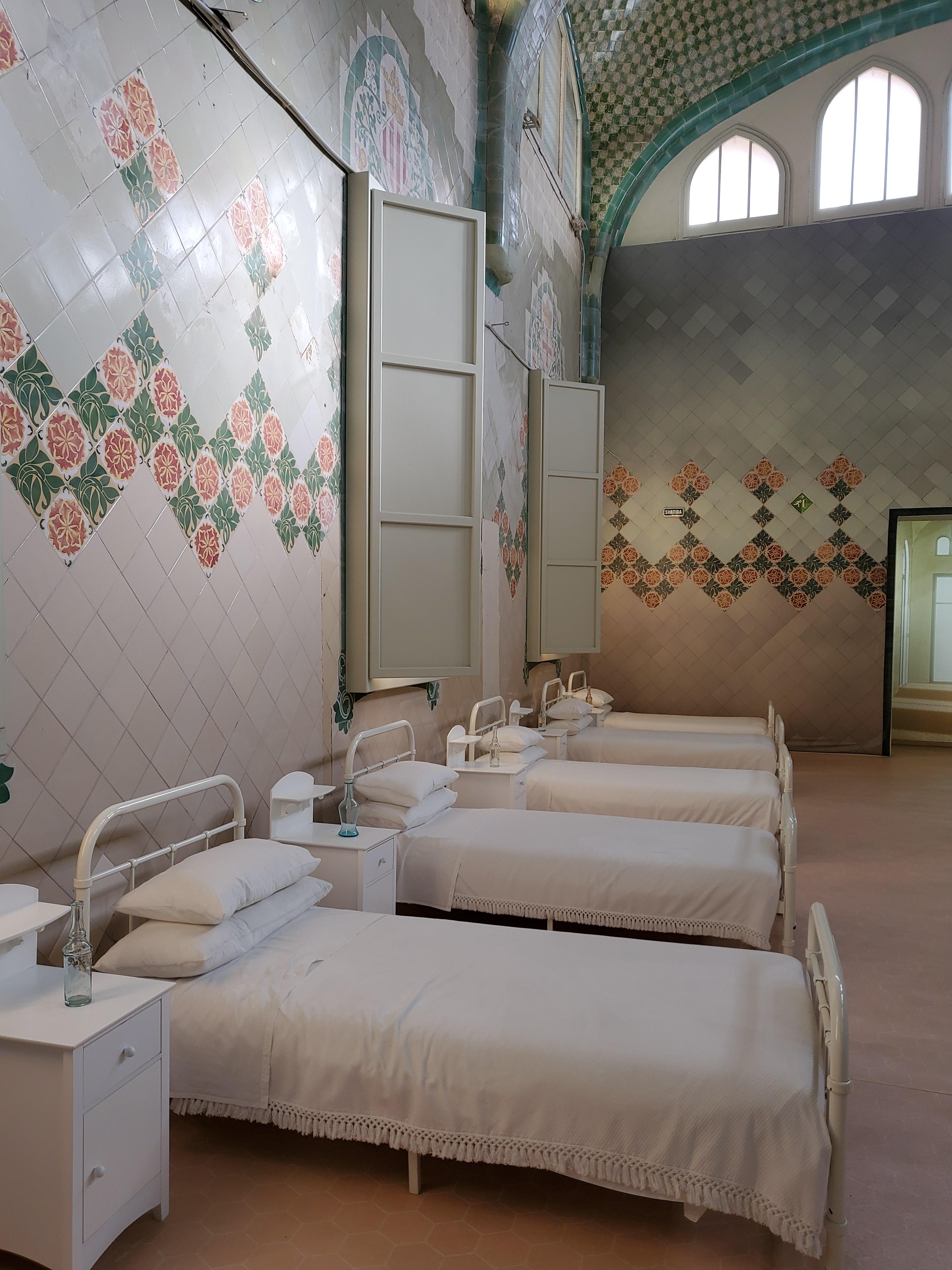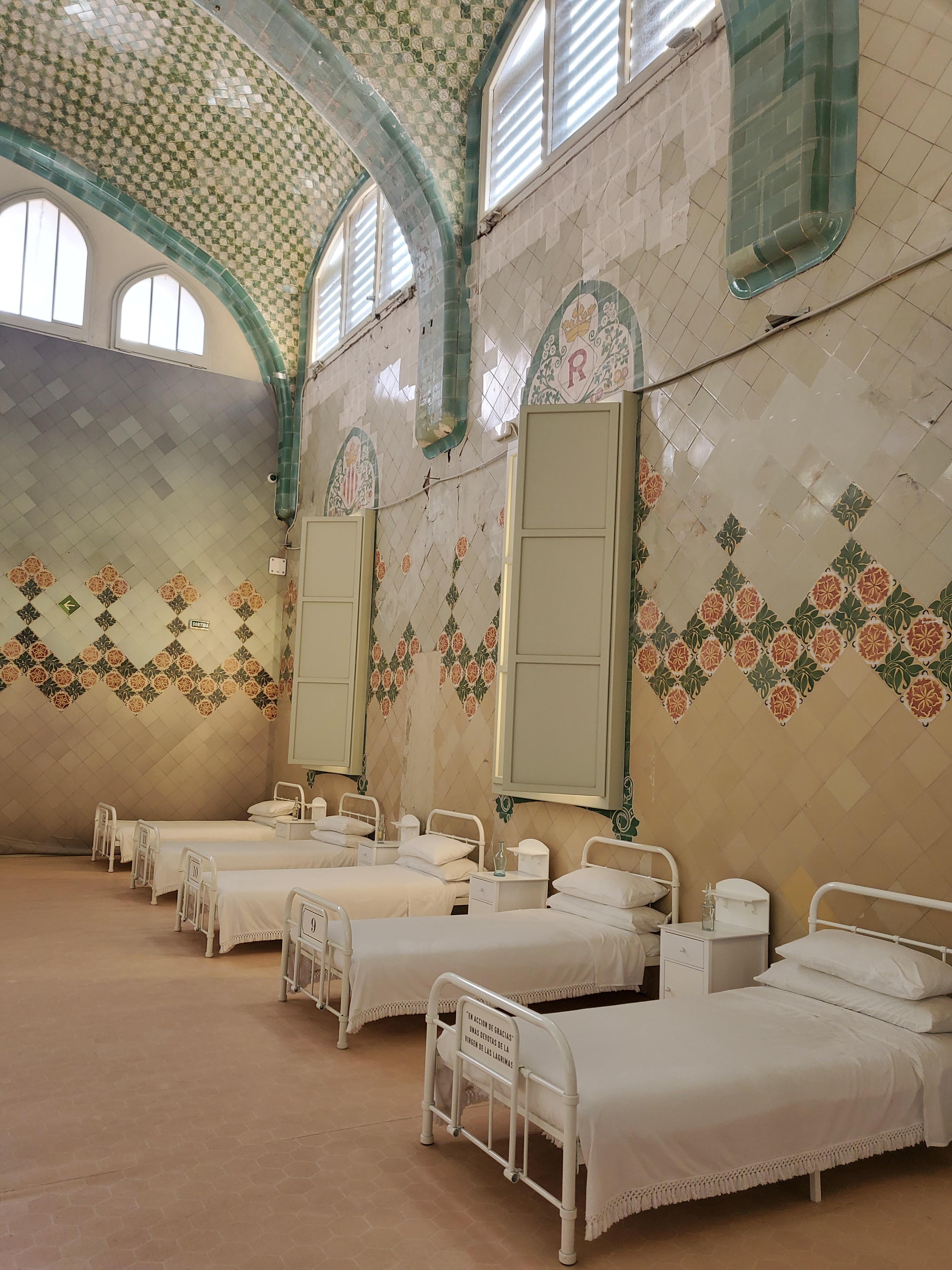 1902년 1월 15일에 시작된 공사는 1923년 담당 건축가였던 루이즈 도메네치 몬타네르가 사망하자, 그의 아들인 페레 도멘치 라우라(Pere Domènech i Roura)가 이어받아서 건축을 이어나갑니다. 하지만 건물이 다 완성이 되지 않았는데도 불구하고 1930년 1월 16일, 알폰소 13세의 명령 때문에 병원을 다 완성도 하지 못한 채 병원을 개원하게 됩니다. 지금까지 병원 관람이 오픈되지 못한 이유도 아직 병원 전체가 완성되지 못했기 때문이죠