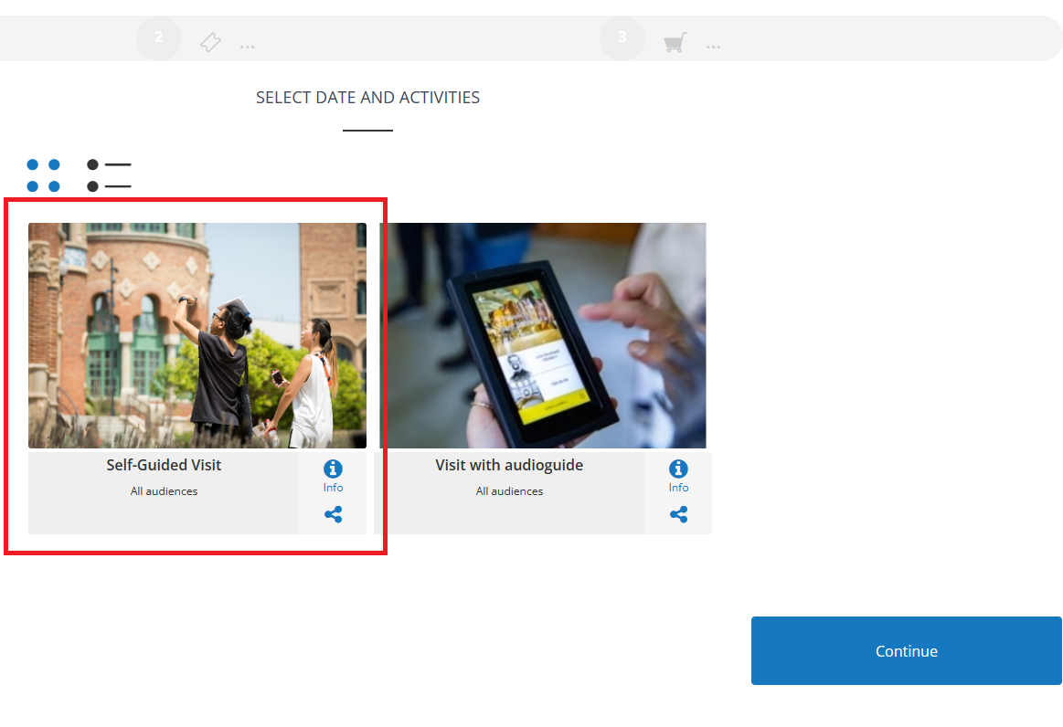 5. 입장에 해당되는 티켓 수량을 세팅한 뒤 Continue를 클릭해 주세요