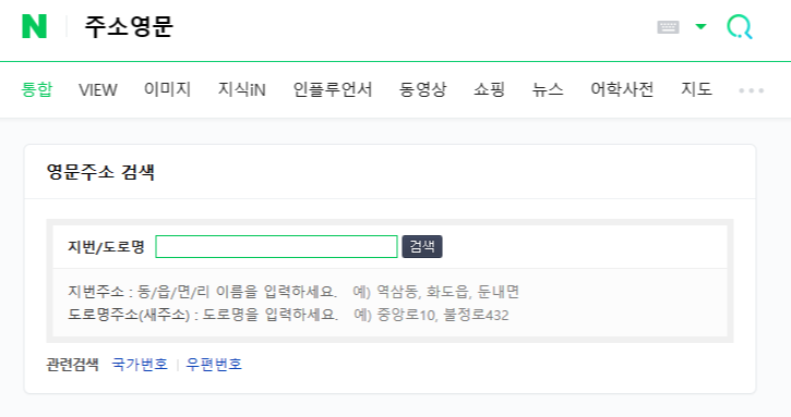 8-2 위 사진에 주소를 입력하라는 란이 있습니다. 본인 영문 주소는 네이버 검색착에 '주소영문'이라고 검색하신 뒤, 지번 주소나 도로명 주소를 입력하시면 됩니다.