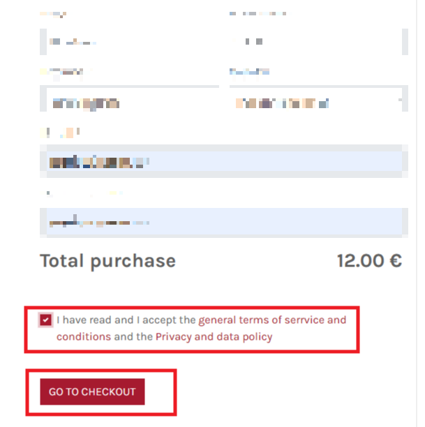 9. 개인정보를 다 입력했다면, 아래 문항을 체크 한 뒤 Go to checkout을 클릭해 주세요.