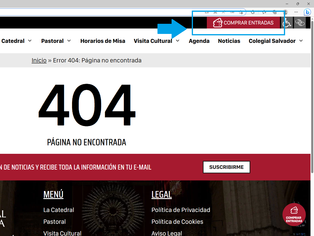2. 접속하면 웬 에러창이 떠 있습니다. 당황 ㄴㄴ하고 우측 상단에 comprar entradas(입장권 구매)를 클릭해 주세요