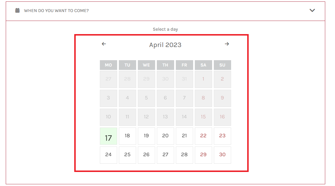 5. 원하는 입장 날짜를 선택해 주세요