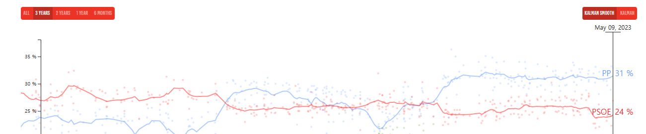 하지만 산체스의 이런 공약은 2022년 지방선거 때도 18세 유권자를 대상으로 문화 바우처 프로그램을 시장하여 400유로어치를 바우처를 지급하는 공약을 내놓은 적이 있어 논란이 한 번 더 가중되고 있습니다. 현재 산체스 총리가 이렇게 과도한 세금을 쓰면서 표심을 사려는 이유는 제1 야당인 인민당(PP)의 지지율이 여당의 지지율을 훨씬 앞지르고 있기 때문입니다.