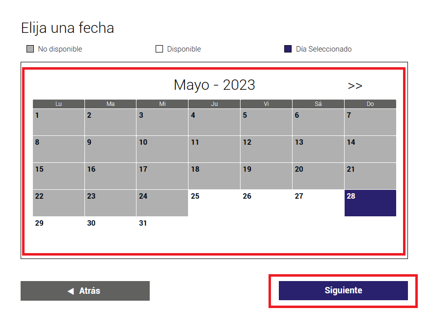 6. 원하는 방문 날짜를 선택한 뒤, Siguiente를 클릭해 주세요