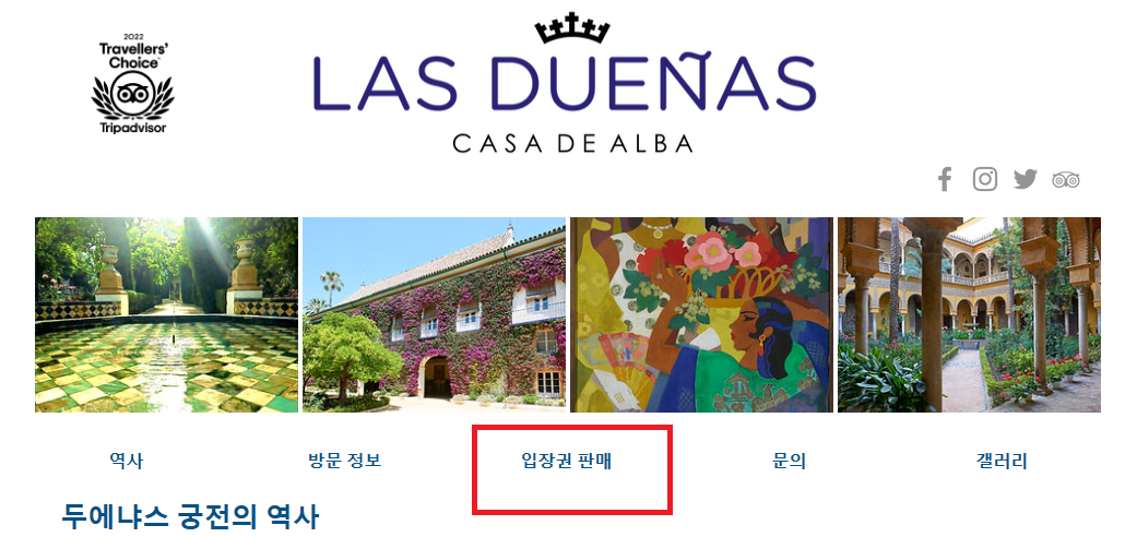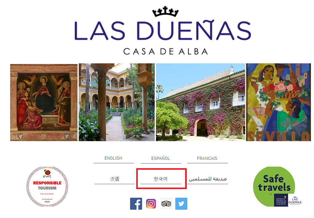 1. WEB OFICIAL: Las Dueñas - Casa de Alba | Sevilla, Andalucía, España | Home (lasduenas.es) 로 접속해 줍니다