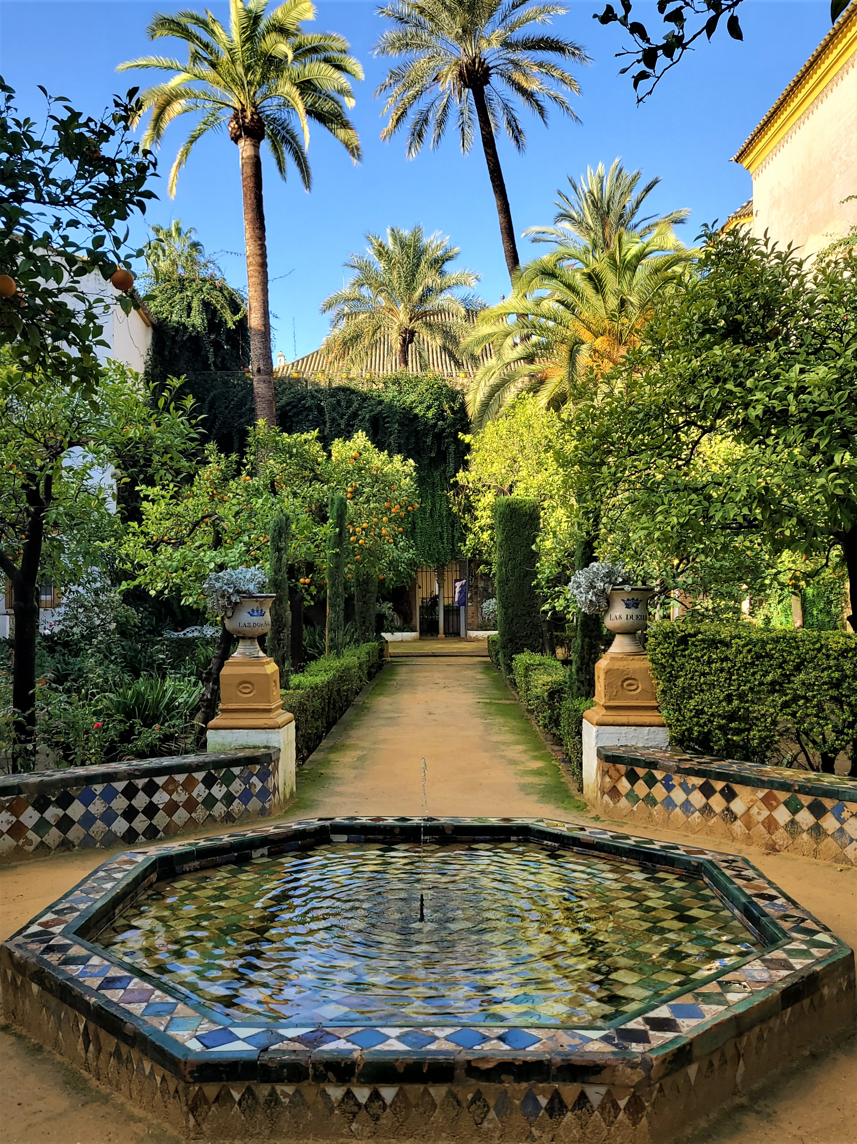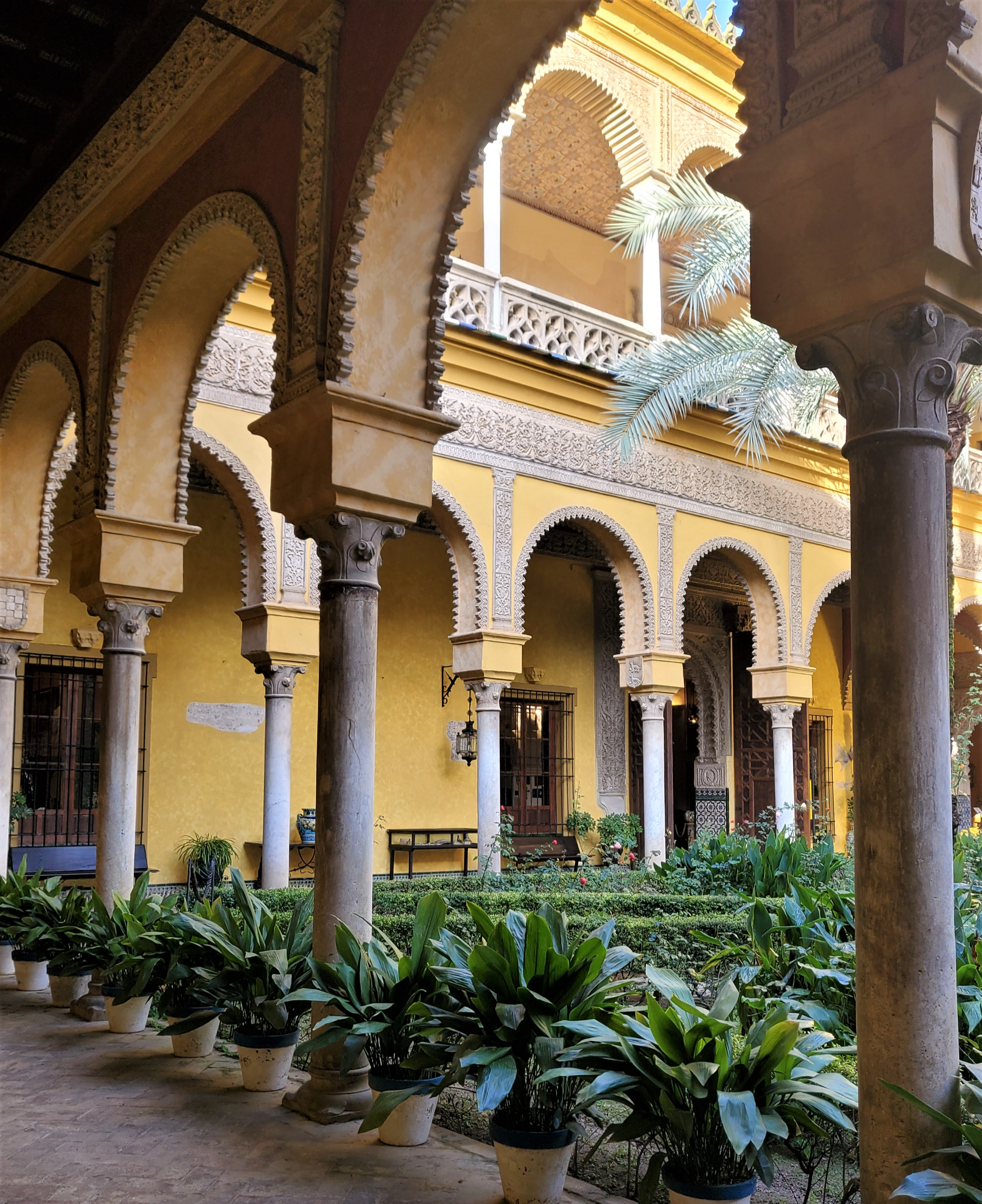라스 두에냐스는 카스베르메하(Casabermeja) 지역의 영주 가문인 피네다(Pineda) 가문에서 지은 집으로, 세비야가 이슬람 영향을 많이 받은 만큼 무하데르 양식의 디자인을 고딕 양식과 혼합하여 집을 짓게 됩니다. 당시 저택을 지을 때는 9개의 분수대와 11개의 안마당, 100여 개가 넘는 대리석을 이용하여 집을 지었다고 알려져 있습니다. 피네다 가문은 세비야 시의회에서 사무일을 봤고, 필요에 따라 왕의 명령에 따라 전쟁에도 참전했습니다.