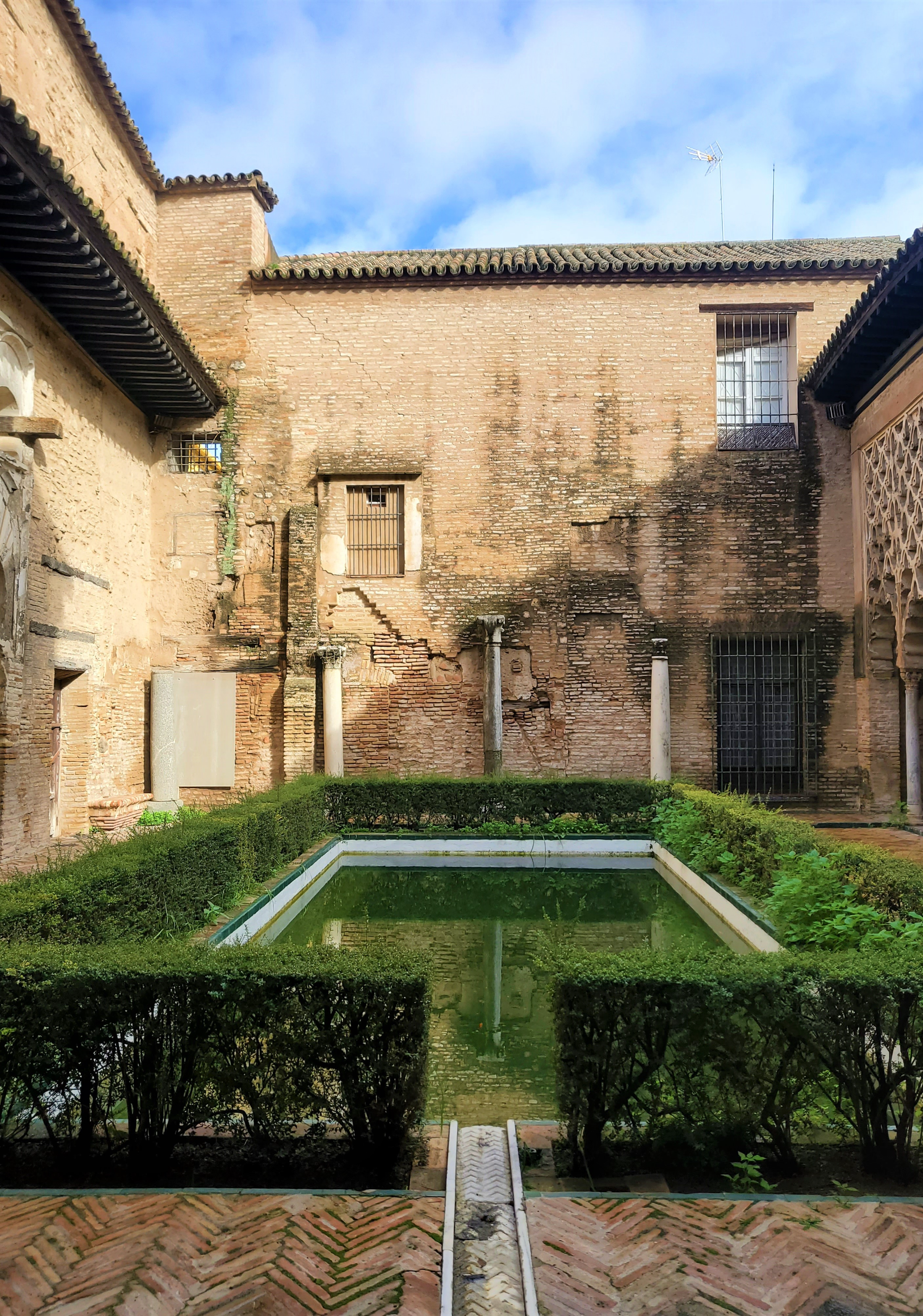 1356년 세비야에는 대지진이 발생하여 알카사르의 많은 부분이 무너져내리는 일이 발생했습니다. 당시 스페인왕이었던 페드로 1세는 1364년 기독교 건축양식이 섞여 있는 무데하르 궁전을 건설하여 레알 알카사르는 다양한 건축양식이 혼합되기 시작합니다. 1366년부터 3년간 무데하르 궁전 내에 대사관을 건설하여 완성시키기도 했습니다.