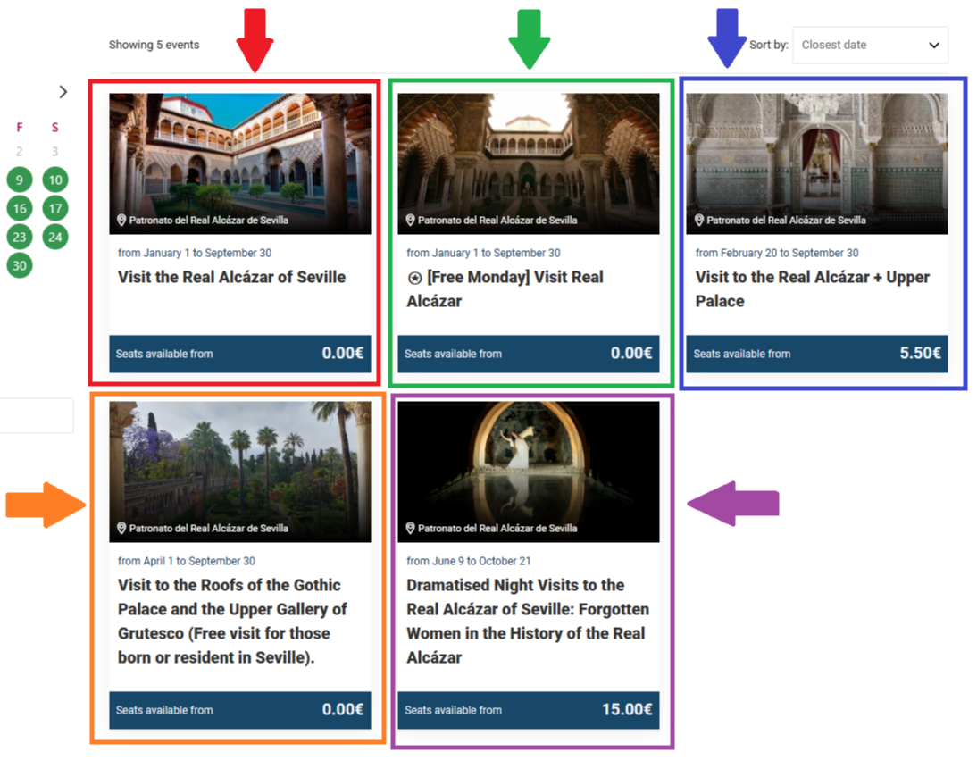 visit the real Real Alcázar of Seville (빨간색 화살표) - 기본 티켓이고, 2023년 기준 일반 1인 표가 13.5유로입니다 (참고로 저기에