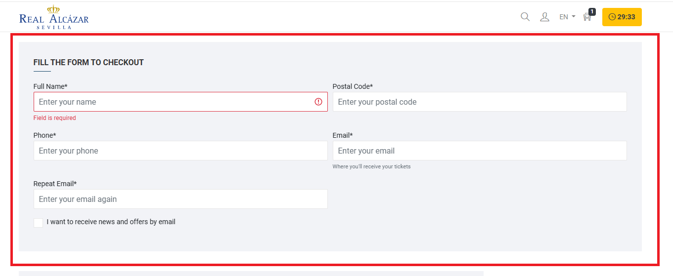참고로 레알 알카사르는 인터넷 예매를 하면 수수료로 1유로를 추가로 내야 합니다.