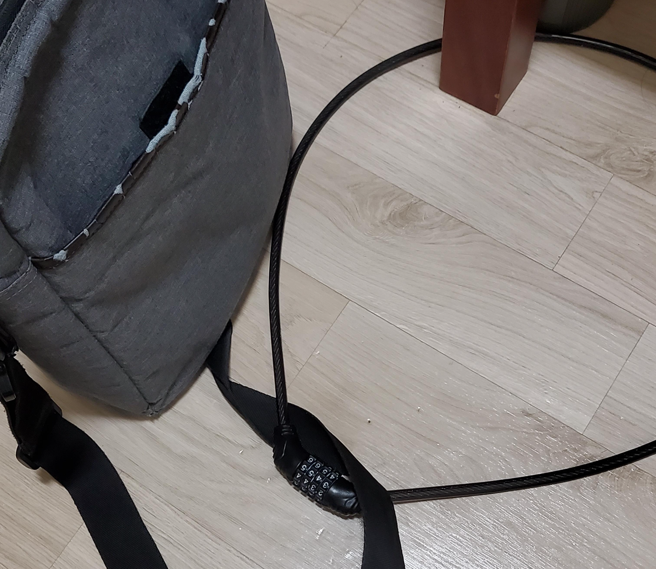 개인적으로 자물쇠는 공항에 있을 때 공항 기둥에 묶고 화장실을 자주 다녀왔다. 버스 정류장에 있을 때도 의자에 묶고 2~3번 다녀왔더니 아무 문제가 없었습니다. [물론 best는 캐리어도 같이 가지고 다니는 것이다.] (누가 절단기나 커다란 니퍼 가지고 다니지 않는 이상, 소매치기꾼이 자물쇠에 해박한 지식을 가지고 있지 않는 이상 뚫지 못할 것이다)